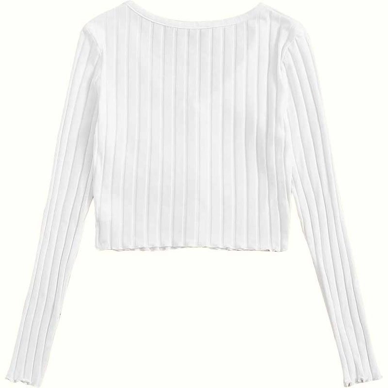 Button Front Rib-Knit Lettuce Trim Tee by Blaze Impex