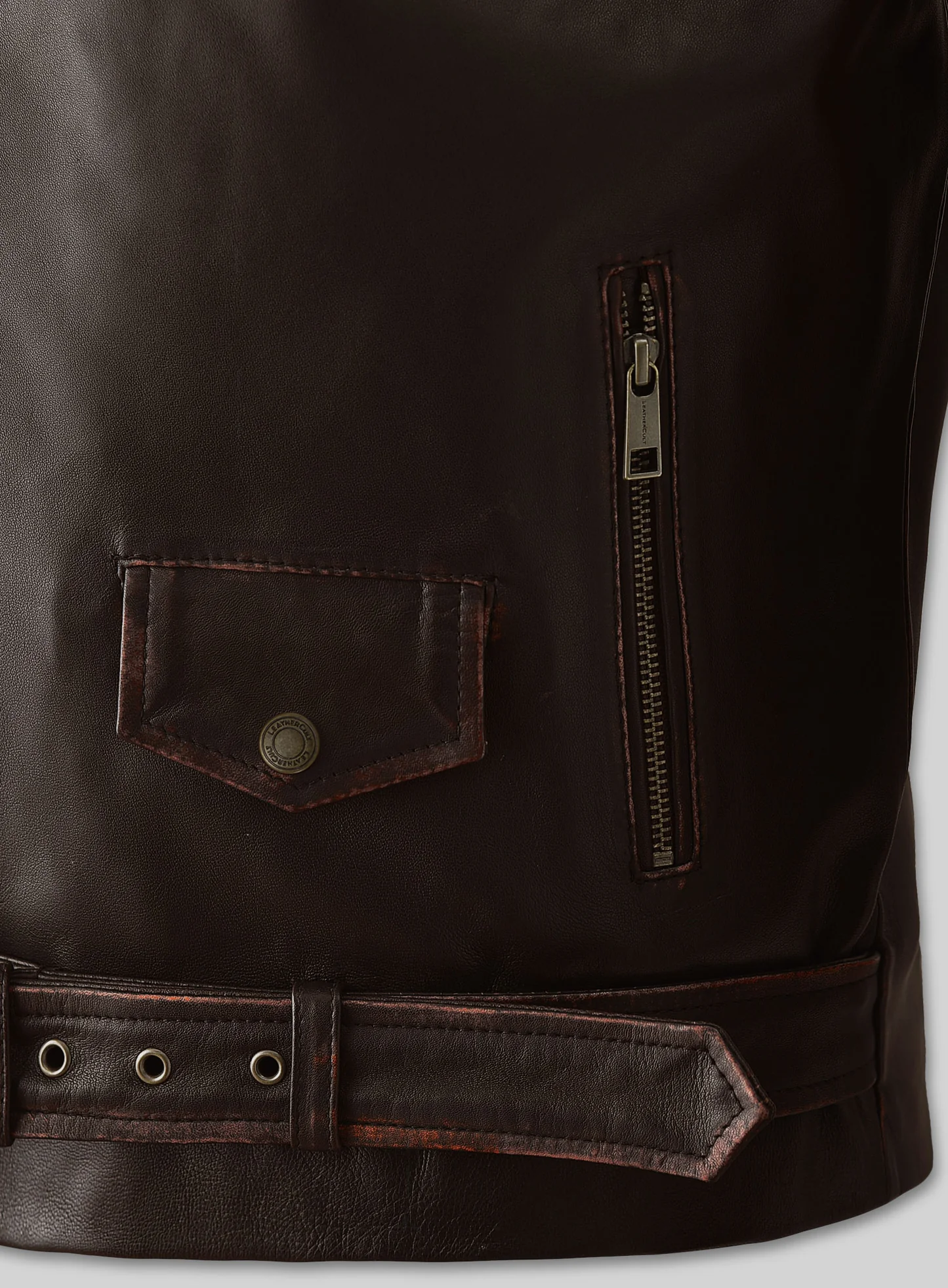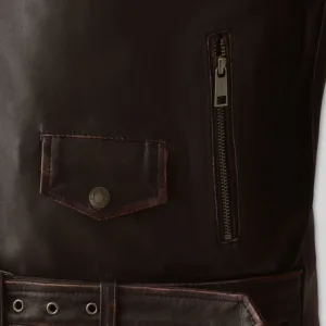 Fuel your inner outlaw with the Enforcer Dark Brown Biker Leather Jacket—a high-octane blend of grit and precision. Built from deep, burnished brown leather with distressed detailing and bold topstitch highlights, this piece captures that raw-road aesthetic. The asymmetrical zip, classic wide lapels, shoulder epaulets, and functional belt cinch the attitude in place. This jacket doesn’t whisper rebellion—it roars it.